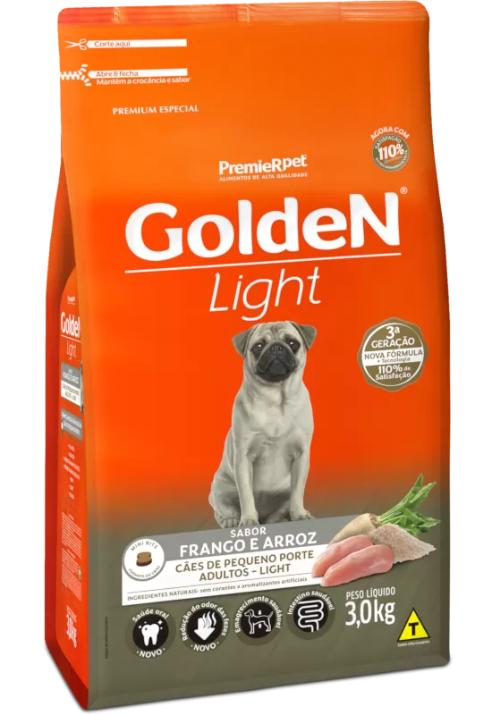 Com GoldeN® Formula Light Mini Bits seu cão faz dieta sem perder o prazer de comer!