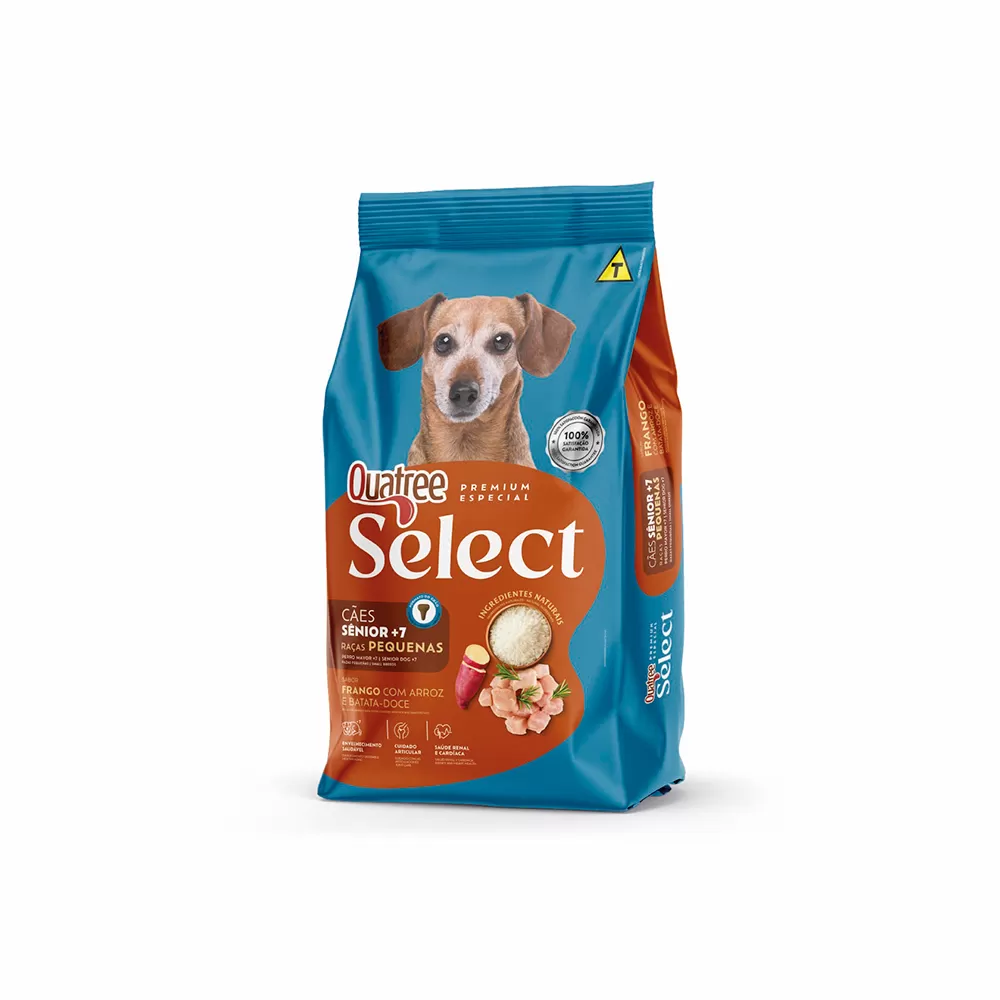 Ração Quatree Select para Cães Sênior +7 Raças Pequenas Sabor Frango com Arroz e Batata Doce 10,1KG