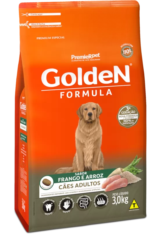 Formulado a partir dos mais modernos conceitos em nutrição, GoldeN® Formula Adultos Frango & Arroz é um alimento completo que proporciona aos cães adultos o nível ideal de todos os nutrientes que eles necessitam para uma vida longa e saudável.