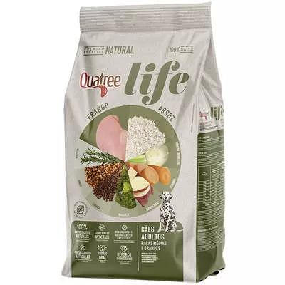 Ração Quatree Life Frango e Arroz Cães Adultos Raças Médias e Grandes 15KG