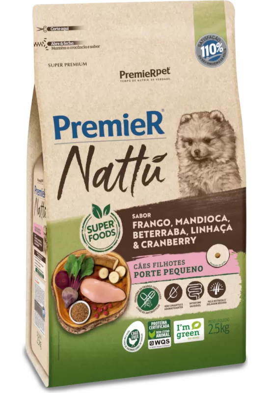 PremieR® Nattu Cães Filhotes Porte Pequeno Frango, Mandioca, Beterraba, Linhaça e Cranberry 2,5kg
