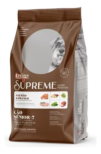 Quatree Supreme Sênior +7 Raças Pequenas é um alimento Super Premium formulado com conservantes 100% naturais e livre de transgênicos, garantindo fácil digestão e absorção dos nutrientes. A combinação de proteínas selecionadas e ingredientes naturais e funcionais garante mais saúde e longevidade para o seu cão.