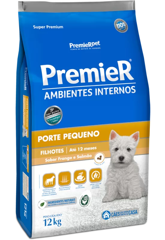 PremieR® Ambientes Internos Filhotes é o primeiro alimento Super Premium específico para filhotes com este estilo de vida. Sua fórmula exclusiva contém somente ingredientes nobres, conferindo um excelente sabor, pelagem muito mais bonita e saudável, fezes em menor volume e odor reduzido.