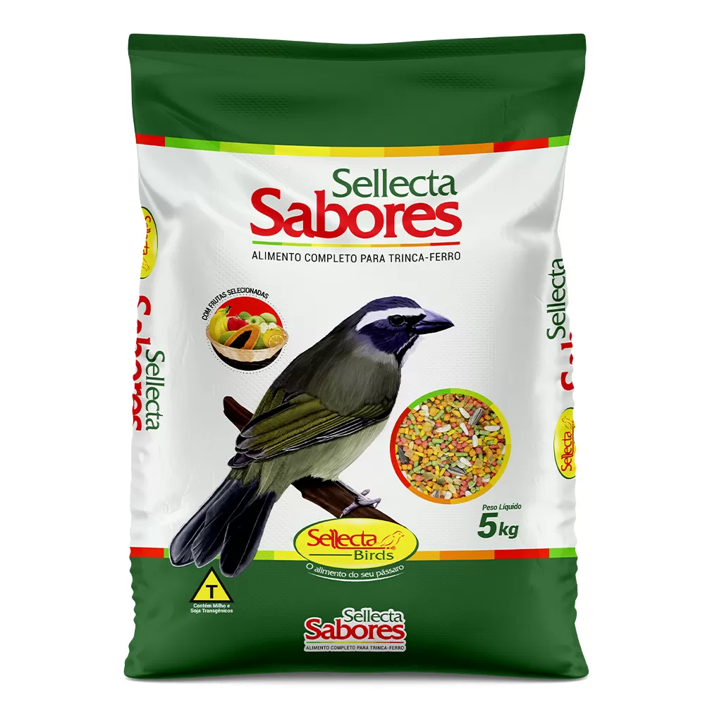 Sellecta Sabores é um alimento completo e balanceado, com extrusado, frutas e sementes, indicado para pássaros onívoros, frugívoros e insetívoros, tais como: trinca-ferro, sabiá, pássaro-preto, frade e outros pássaros adultos e de mesmos hábitos alimentares, em período de manutenção.