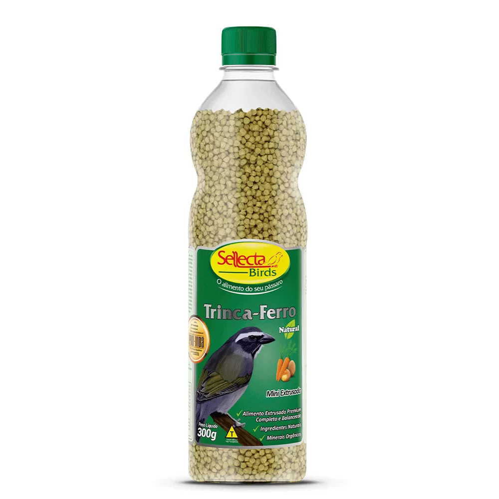 Sellecta Trinca-Ferro Natural Mini Extrusado é um alimento premium, completo e balanceado, com ingredientes naturais e minerais orgânicos, indicado para trinca-ferro e outros pássaros onívoros adultos e de mesmos hábitos alimentares, em período de manutenção.