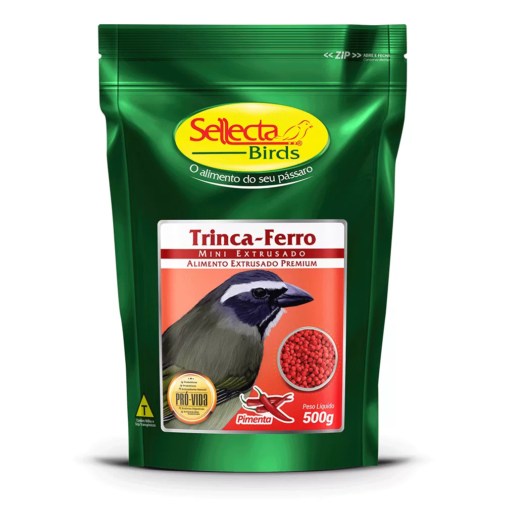Sellecta Trinca-Ferro Pimenta Mini Extrusado é um alimento premium, completo e balanceado, indicado para trinca-ferro e outros pássaros onívoros adultos e de mesmos hábitos alimentares, em período de manutenção.