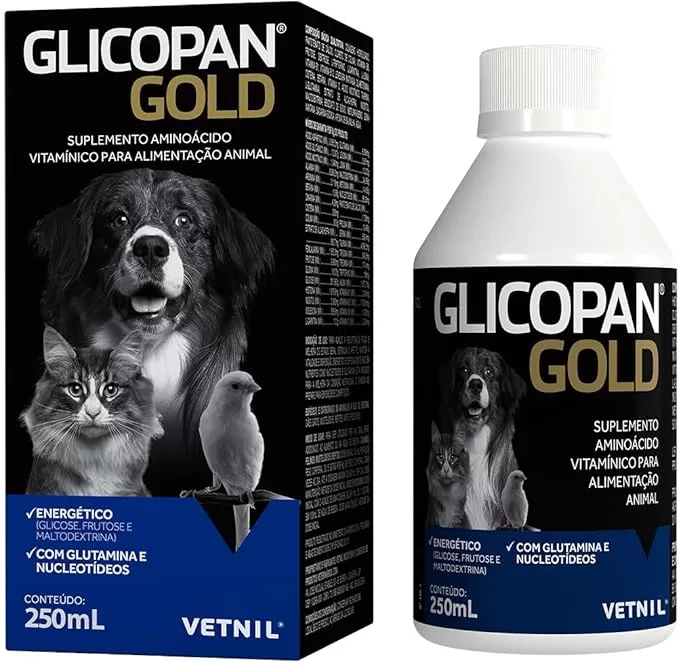 Recuperação e vitalidade: Glicopan Gold é uma fonte concentrada de vitaminas, aminoácidos e minerais que ajudam na recuperação e revitalização de animais debilitados ou convalescentes.