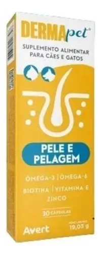 Dermapet 30 Capsulas Suplemento Pelagem Avert