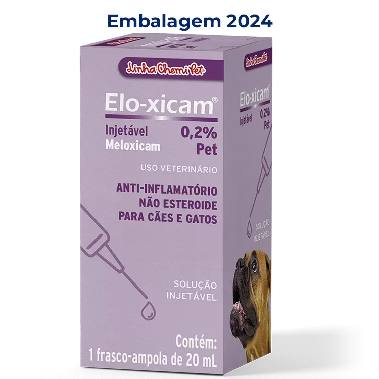 O Anti-inflamatório Elo-xicam Injetável 0,2% é um potente anti-inflamatório, indicado em processos inflamatórios dos cães e gatos, principalmente nas patologias dolorosas agudas. O medicamento age inibindo sinalizadores inflamatórios importantes, com excelentes propriedades antipirética e analgésica devido ao seu princípio ativo: o Meloxicam. Como o medicamento age inibindo preferencialmente a enzima cicloxigenase – 2 (COX2 seletivo), tem menores efeitos colaterais e complicações gástricas quando comparado a outras classes de anti-inflamatórios.