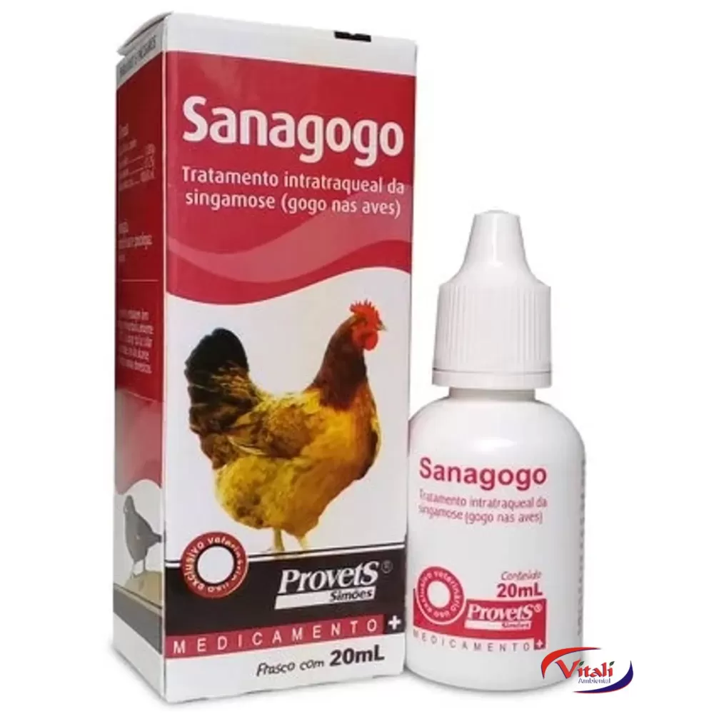 Imobilizar a ave, delicadamente. Com os dedos, polegar e indicador, abrir o bico e elevando a garganta da ave, até aparecer o orifício da laringe, pingar 2 a 5 gotas de Sanagogo neste orifício, tomando-se cuidado para não asfixiar a ave. Um só tratamento é suficiente.