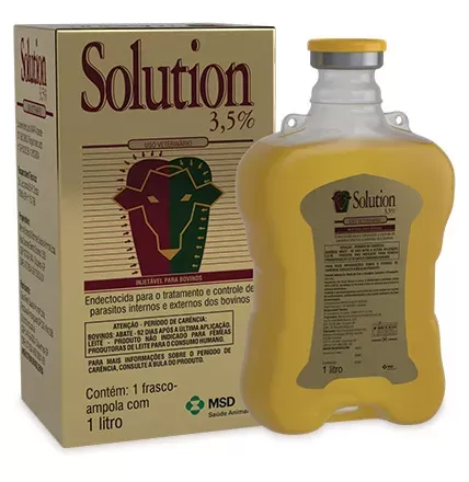 SOLUTION 3,5%, associação de Ivermectina + Abamectina, é um endectocida para bovinos, que combate os nematódeos gastrintestinais, tais como: Haemonchus placei, Cooperia punctata, Oesophagostomum radiatum e Trichostrongylus axei, tem ação bernicida (Larvas de Dermatobia hominis) e auxilia no controle do carrapato dos bovinos, Rhipicephalus (Boophilus) microplus.