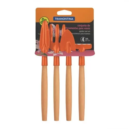 Composto por quatro peças produzidas em metal com cabo de madeira, o conjunto traz ferramentas ideais para o trabalho ao ar livre. Cada peça possui características próprias para as exigências que você encontrar na jardinagem.