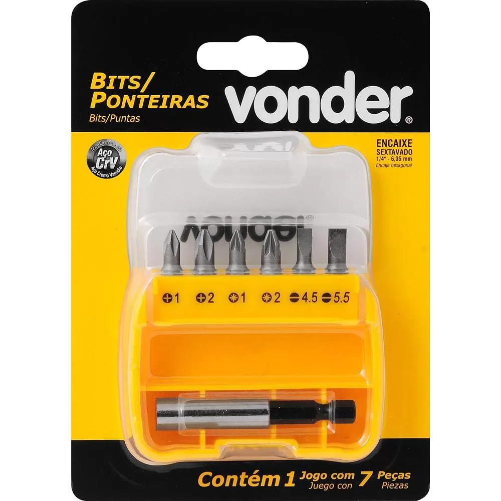 Jogo De Bits/Ponteiras, Com 7 Peças, Encaixe Sextavado 1/4".