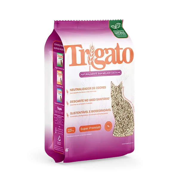 Modo de Uso: Espalhe uma camada de Trigato na bandeja sanitária de seu gato. Substitua conforme necessário. Descartável em vaso sanitário, lixo orgânico ou compostagem.