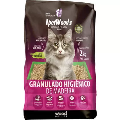 GRANULADO HIGIÊNICO DE MADEIRA 2KG IPETWOODS